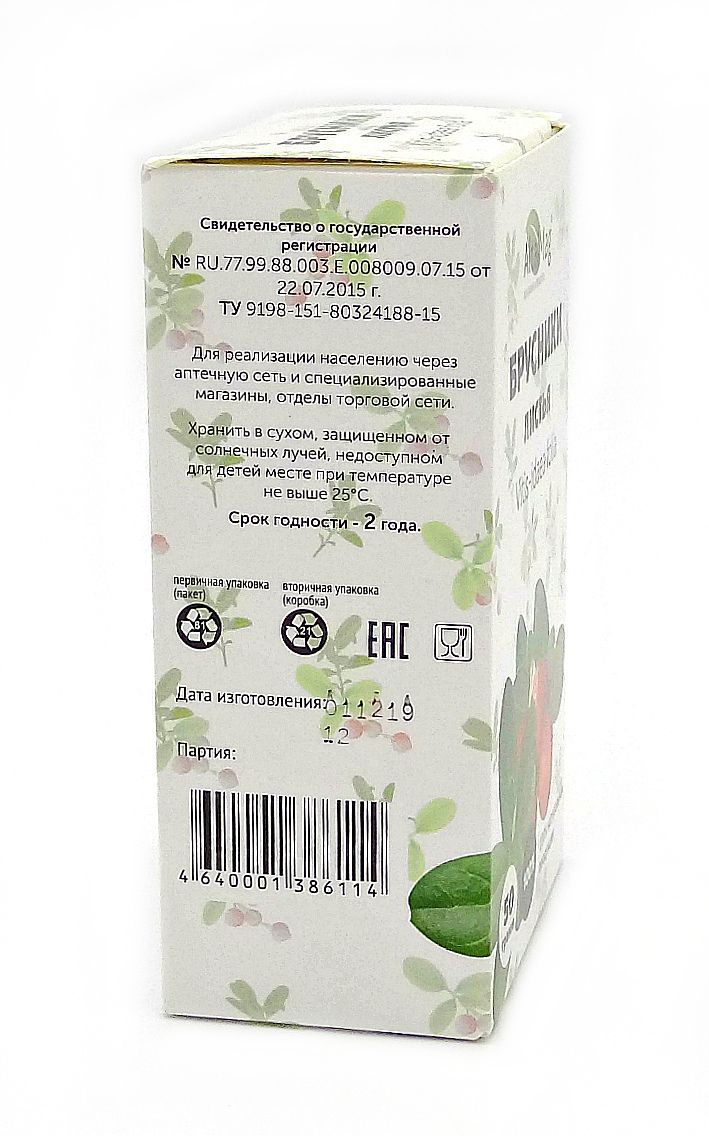 Полезные вещества сохраняются в процессе сушки. Листья брусники не утрачивают своих целебных свойств даже при длительном хранении, если соблюдены все его условия (оптимальная температура и влажность).