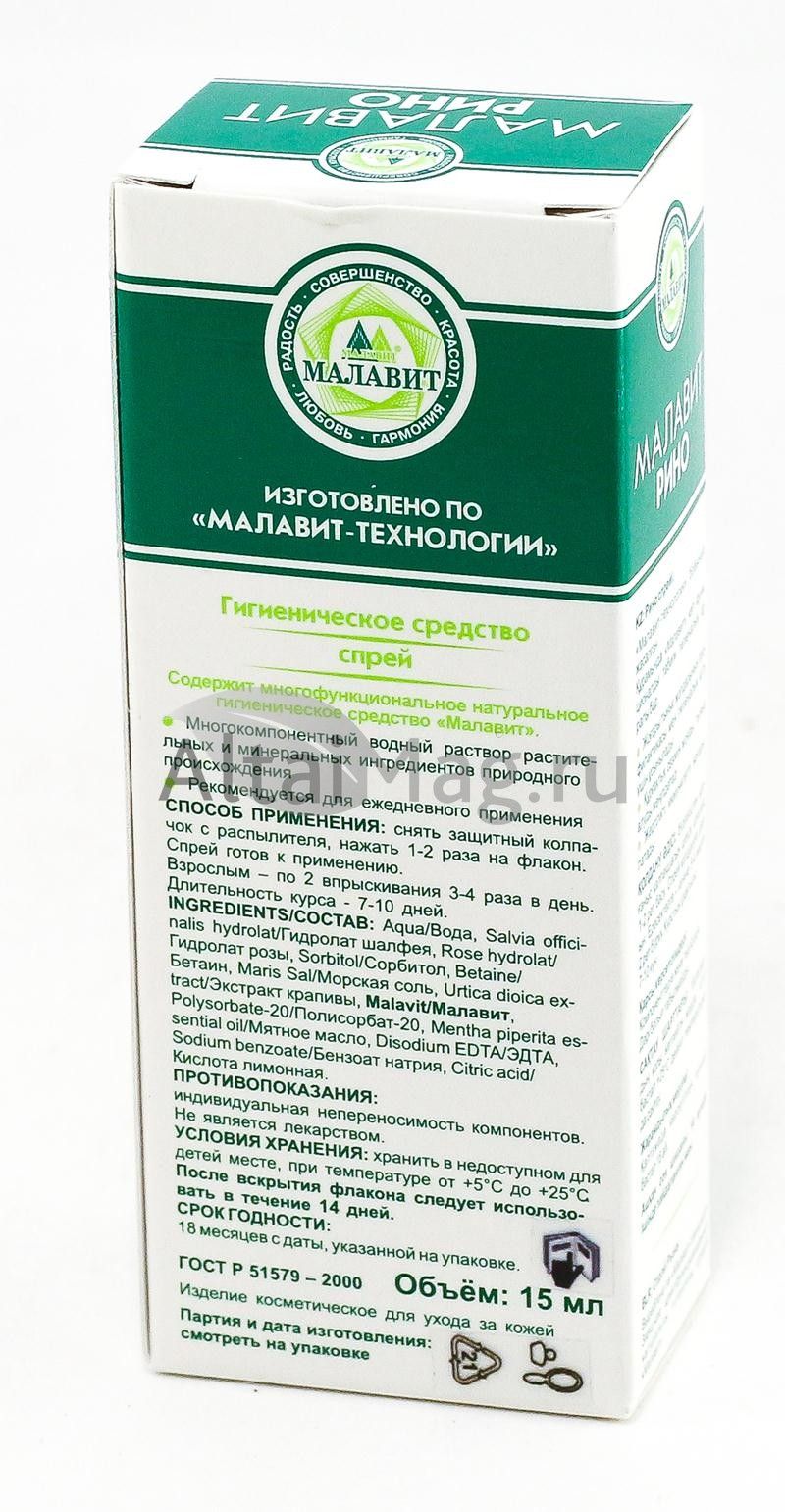 - Чтобы купить Малавит рино спрей, 15 мл совершите всего несколько шагов: укажите количество продукта и нажмите на кнопку «Купить».